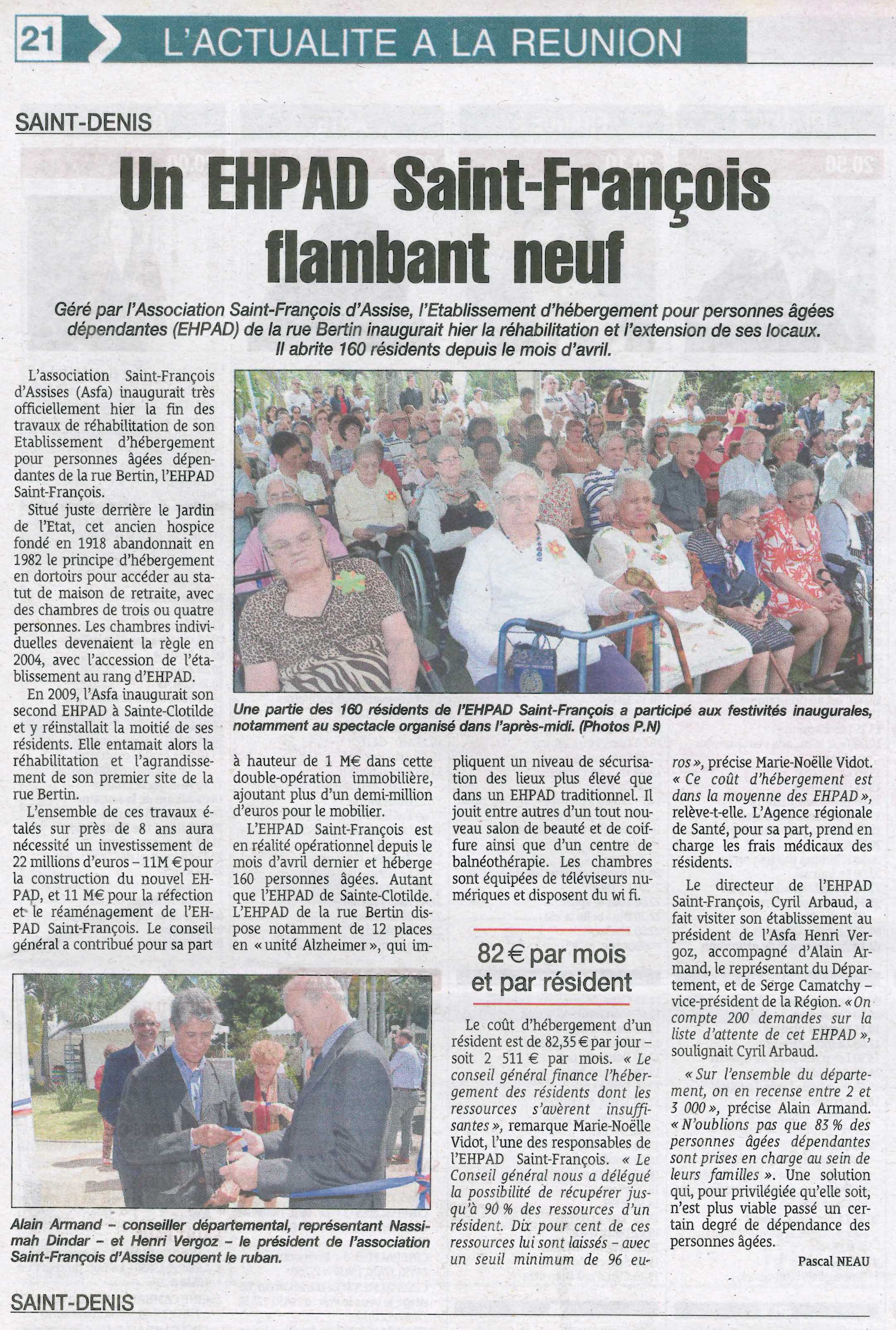 - 02/10/2015 : Le Quotidien - Un EHPAD Saint-François flambant neuf