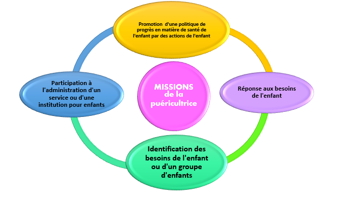 - Promouvoir une politique de progrès en matière de santé de l'enfant par des actions de prévention, d'éducation, de recherche auprès : de parents, d'enfants, d'autres élèves en formation, et de professionnels concernés par l'enfant.