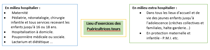 - Les secteurs d’activités de la puéricultrice : sont diversifiés, en milieu hospitalier et en milieu extra